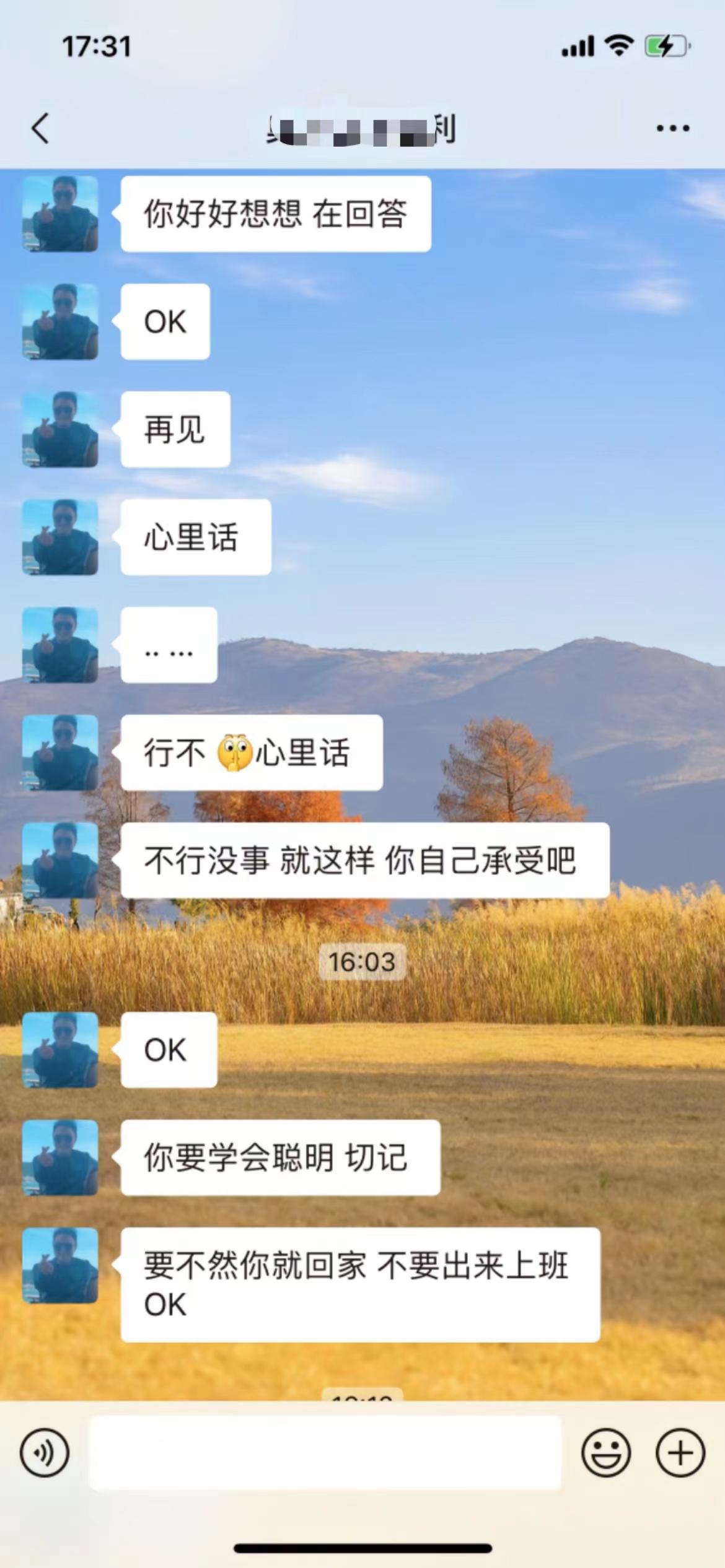 女当事人曝光公司男领导的聊天记录